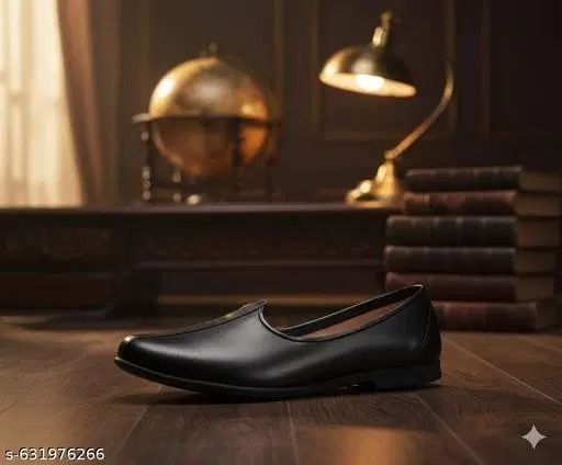 Name: Premium Solid Black Slip-On Jutti for Festive & Wedding Wear Material: Leather Sole Material: Airmix Pattern: Solid Fastening & Back Detail: Slip-On Net Quantity (N): 1 Premium Synthetic Leather: Crafted from high-quality, durable synthetic leather, offering the sophisticated look and feel of real leather while ensuring longevity and easy maintenance.