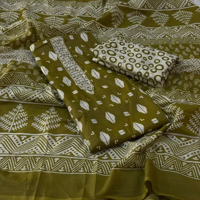 100% Cotton Print with Neck Thread Embroidery Unstitched Suit, Mehndi (Free Size) - Buy Online at CityMall