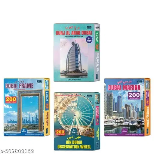 200 Pieces Puzzles set of 4 Jigsaw Puzzles - Burj Al Arab Dubai, Dubai Frame, Ain Dubai Observation Wheell & Dubai Marina @ ₹698 - Buy Online at CityMall