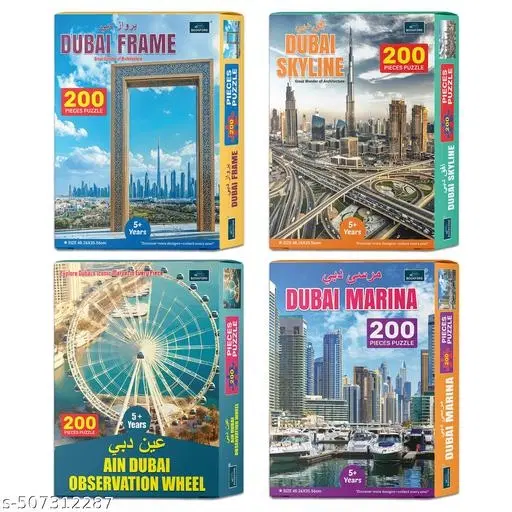 200 Pieces Puzzles set of 4 Jigsaw Puzzles - Dubai Frame, Dubai Skyline, Ain Dubai Observation Wheell & Dubai Marina @ ₹698 - Buy Online at CityMall