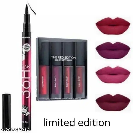 Trending new 4 in 1 multishade red edition lipstick and one 36h eyeliner for professional makeup look