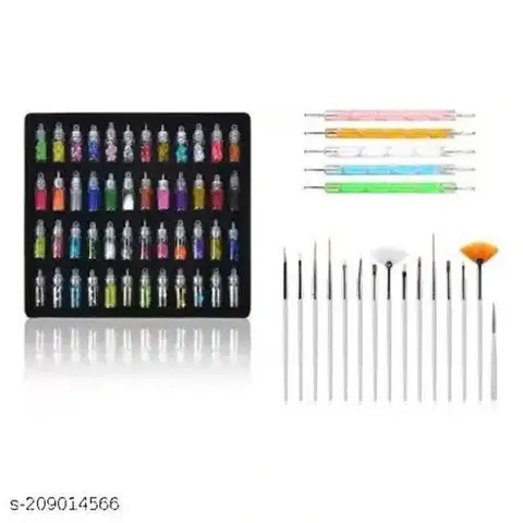 , 48 Pcs Glitter with, 5 Pcs Nail Art Dotting Tools &, 15 Pcs Nail Brushes, Multicolor, Set of 3 - Buy Online at CityMall