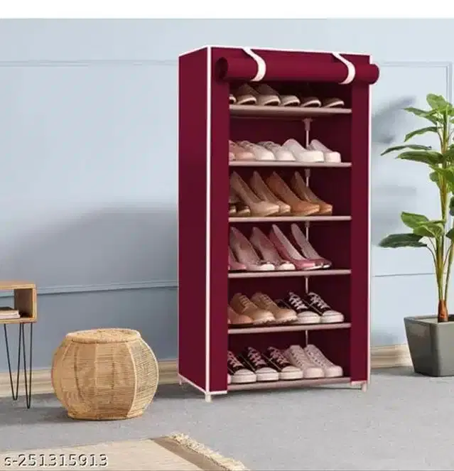 Name: JB STOR PLASTIC PIPE SHOE RACK 6 LAYER MAROON