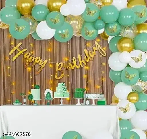 Name: Green Birthday Decoration Items Combo - Pack of 78 | Happy Birthday Decoration Kit | Green Pastel Balloons | 3D Butterfly, Golden Confetti Balloons Girls, Kids | Happy Birthday Foil Banner