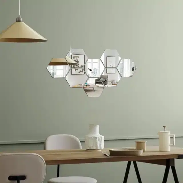 Wardaddy Hexagon Mirror Wall Stickers Is Make In India Product. It’S Made With High Quality 1 Mm Thick Acrylic Mirror Sheets. Material: Acrylic (Plexiglass). Cuted On Industrial Grade Laser Machine. It’S Very Light In Weight, Shatter-Proof, Safe For Kids, Non-Toxic, Eco-Friendly. It Comes With Protection Film On Front Side And Self Adhesive From Back Side. You Have To Just Peel Back Paper And Stick It On Any Flat Surface Like Wall, Door, And Furniture Etc. You Can Paste Easily On Any Flat Surface. We Have Multi Colors Like Silver, Gold, Red, Black, Blue Etc. The Shiny Multi-Colored Mirror Stickers For Wall Is Ideal To Apply On Clean & Dry Smooth Finished Surfaces Like Brush Paint, Ceramic Tile, Wooden, Metal, Glass, And Plastic Surfaces. Wall Stickers For Bedroom, Wall Mirror For Living Room, Dining Room, Kitchen, Kid’S Room, Nursery, Bathroom Mirror, And Office, Entryway, Fridge, Cabinet, Wardrobe, Wash Basin Mirror, Roof, Resort And Hotels, Dance Room, Gym, Training Center, Home Decoration, Window Mirror Sticker, Dressing Decorative Mirror For Wall Decoration. Acrylic Sticker Decorative Mirrors Design Makes Your Home Looks Different & More Attractive And The Reflective Surface Can Make Your Room Brighter. It’S A Great Gift Too. All Images Are Digitally Enlarged To Provide Better View Of Product; Hence Images Stand No Reference For Product Size Comparison. Refer Description Section Of Size And Quantity Details. Full Length Mirror For Bedroom You Will Receive Exact Size Products. Mirror For Wall Background And Other Props Are Only For Depiction, They Will Not Be Included. Note: - This Is Not Mirror. It Is Mirror Finish Plastic. You Can See Your Face If Pasted On Plain And Even Surface, Great Collectible. Acrylic Mirror Sticker For Home Decoration.