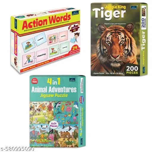 Action Words + 4 In 1 Animals Adventures + Jungle King Tiger| Set of 3 - Engaging Puzzle Learning Fun for Kids! @ ₹714 - Buy Online at CityMall