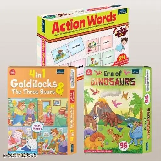 Action Words + 4 in 1 Goldilocks and The Three Bears + Era of Dinosaur | Set of 3 – Fun & Educational Puzzle Combo for Kids | Early Learning, Brain Development, Activity Game, Gift for Kids, Montessori Learning, Preschool & Kindergarten Learning Toys @ ₹600 - Buy Online at CityMall