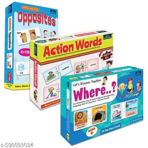 Action Words + Let's Discover Together Where + Match & Pair - Opposites Words| Set of 3 - Engaging Puzzle Learning Fun for Kids! @ ₹600 - Buy Online at CityMall