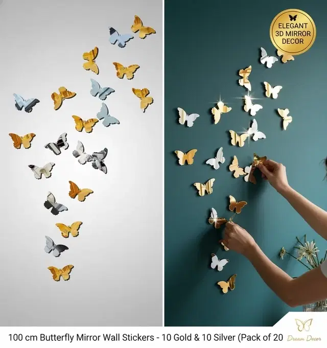 Akarts 100 cm butterfly 10 golden 10 silver mirror wall stickers - Buy Online at CityMall