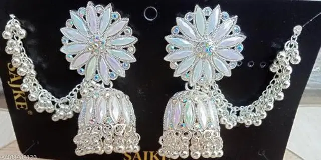 Alloy Earrings for Women, Set of 1 (Silver & White)