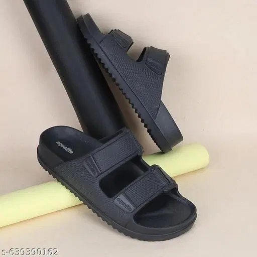 Name: Lightweight Adjustable EVA Comfort Black Sliders for Men | Trendy Soft Cushioned Daily Wear Sliders |Anti-Skid Adjustable Strap Casual Slippers