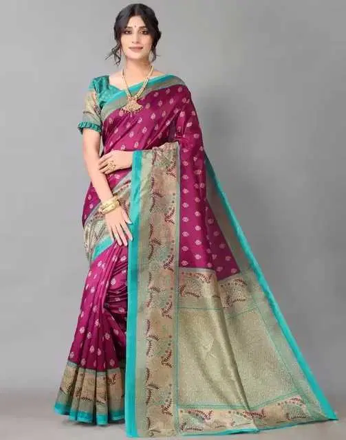 Art Silk Daily Wear Printed Saree (Rani & Blue) (V11) - Buy Online at CityMall