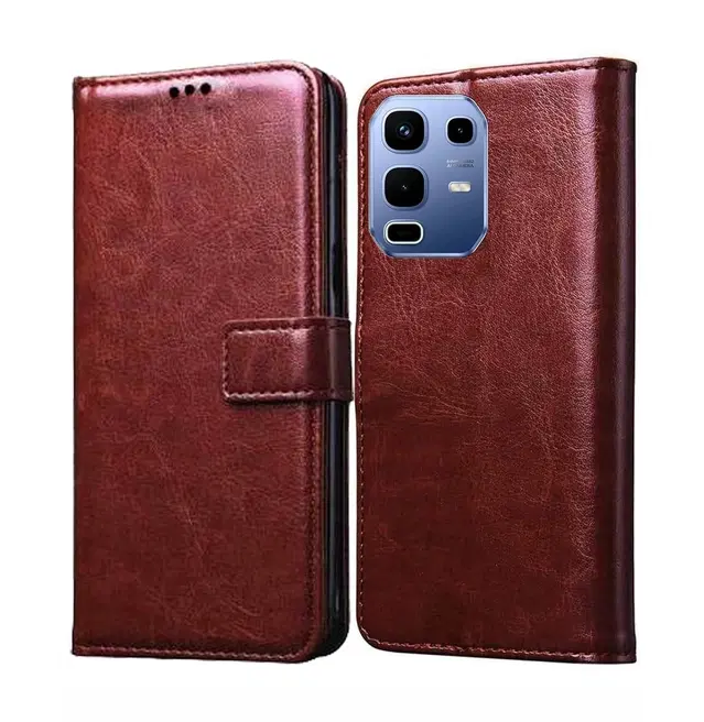 Artificial Leather Mobile Flip Cover for Infinix X6857B / Note 50x 5G (Brown)