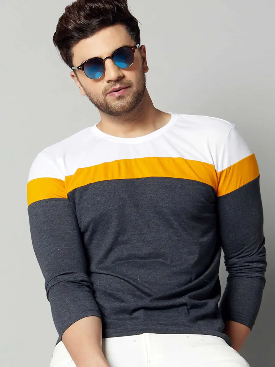 Ausk Full Sleeve Color Block T-Shirt (Multi, L) (AK-001) - Buy Online at CityMall