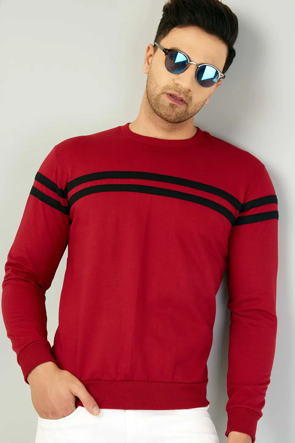Ausk Men'S Stripe & Black Full Sleeve Sweatshirt (Maroon, S) (AK-634) - Buy Online at CityMall