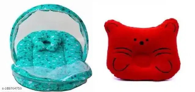 Baby Mosquito Net with Pillow, Green & Red, Set of 2 - Buy Online at CityMall