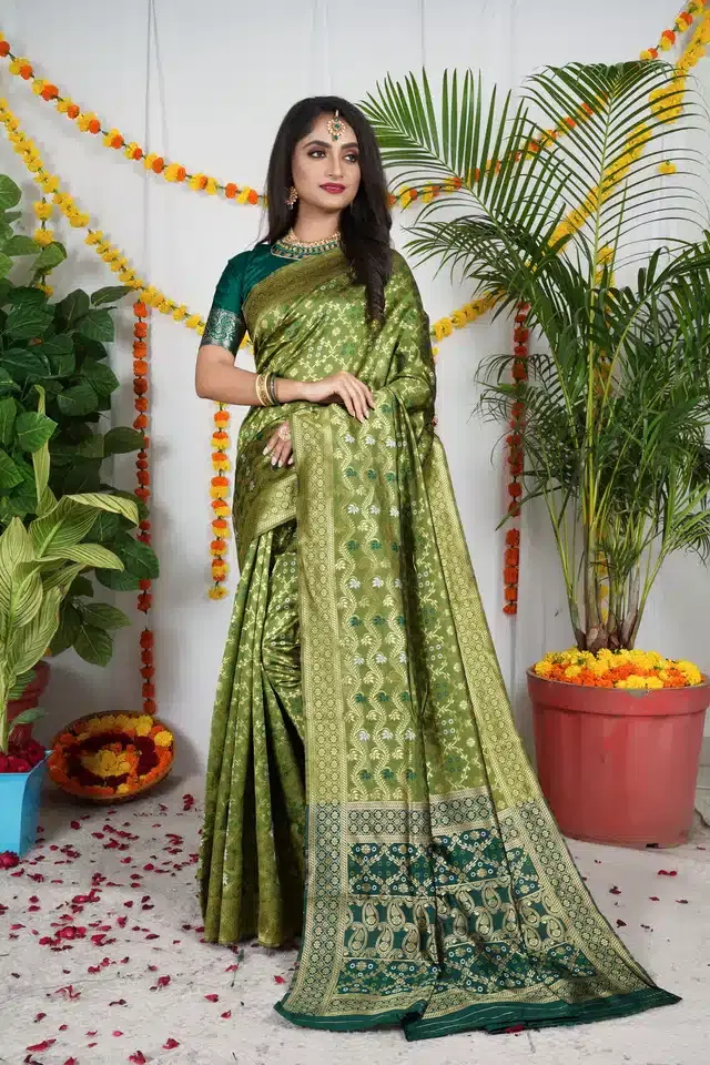 Banarasi Embellished Saree for Women (Green, 6.3 m)