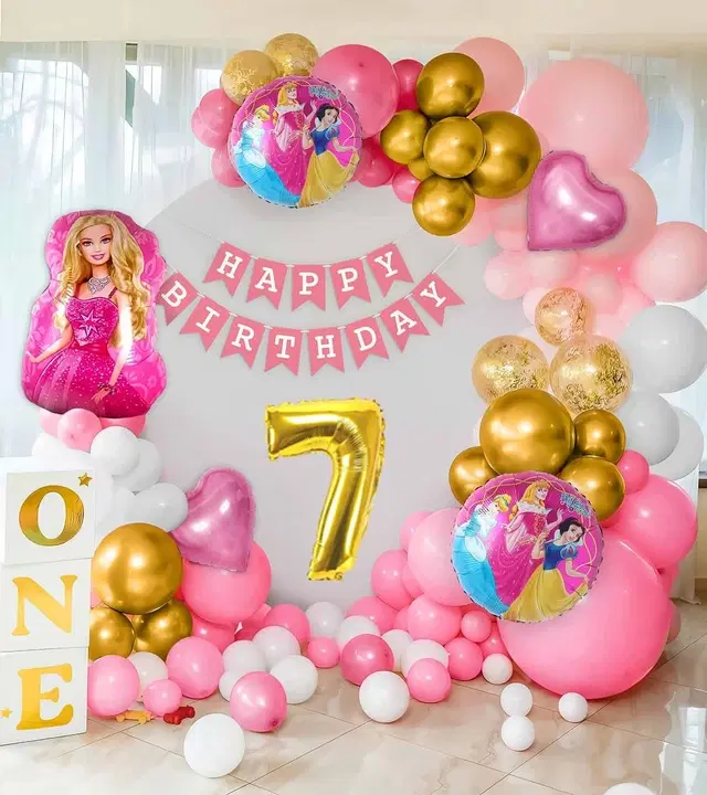 Barbie Theme 7th Birthday Balloon Decoration Kit For Kids, Multicolor, Pack Of 80 - Buy Online at CityMall