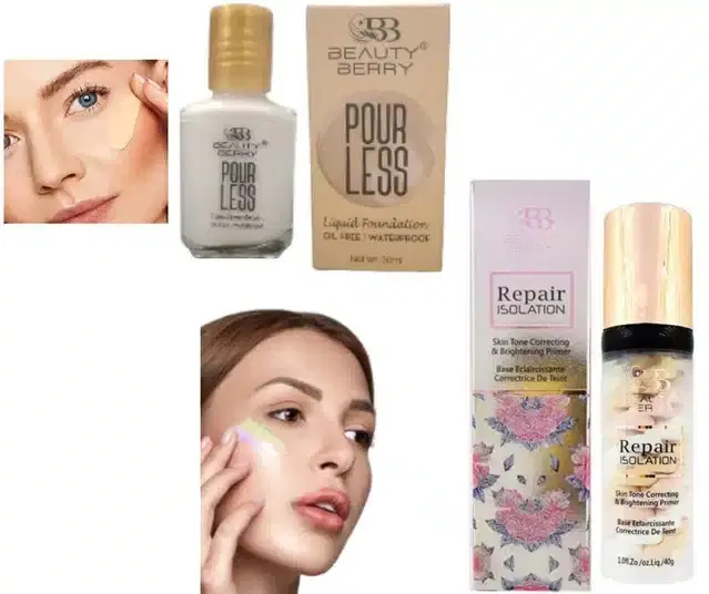 Each Combo Pack Contains - 1 Beauty Berry Repair Isolation Skin Tone Correcting & Brightening Primer + 1 Beauty Berry Poreless Oil Free Waterproof Liquid Foundation