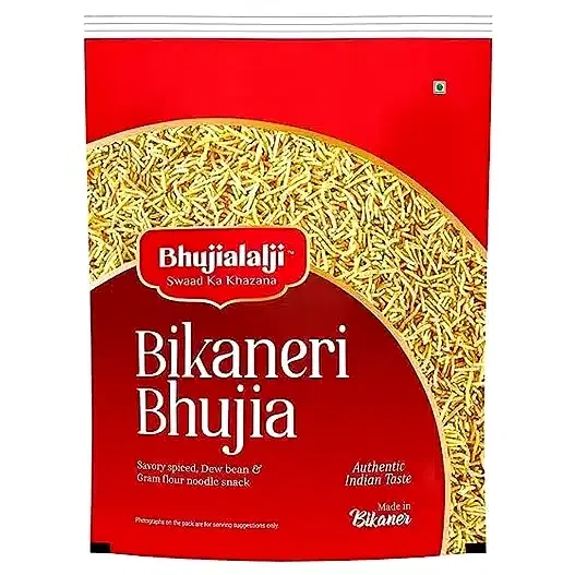 Introducing Bhujialalji Bikaneri Bhujia - A Royal Rajasthani Delight! Discover the true taste of Rajasthan with Bhujialalji Bikaneri Bhujia. This pack is filled with the all-time favorite Rajasthani namkeen that combines the richness of dew beans, gram flour, and authentic Indian spices. Indulge in the regal flavors of Bhujialalji Bikaneri Bhujia.