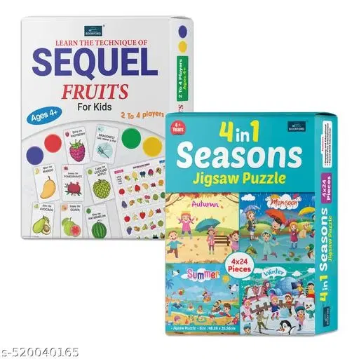 Bookford Sequel Fruits Game & 4-in-1 Seasons Jigsaw Puzzle – Fun & Educational Naturee Learning Set for Kids – Explore Weather, Seasons & More! @ ₹524 - Buy Online at CityMall