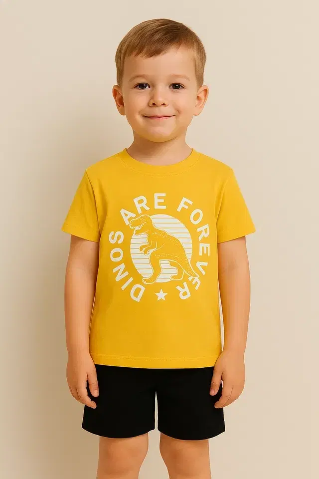 Round Neck Printed T-Shirt for Boys, Yellow (6-8 Years) - Buy Online at CityMall
