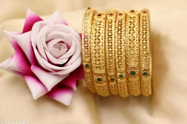 Brass Bangles for Women, Pack of 6 (Multicolor, 2.6) - Buy Online at CityMall