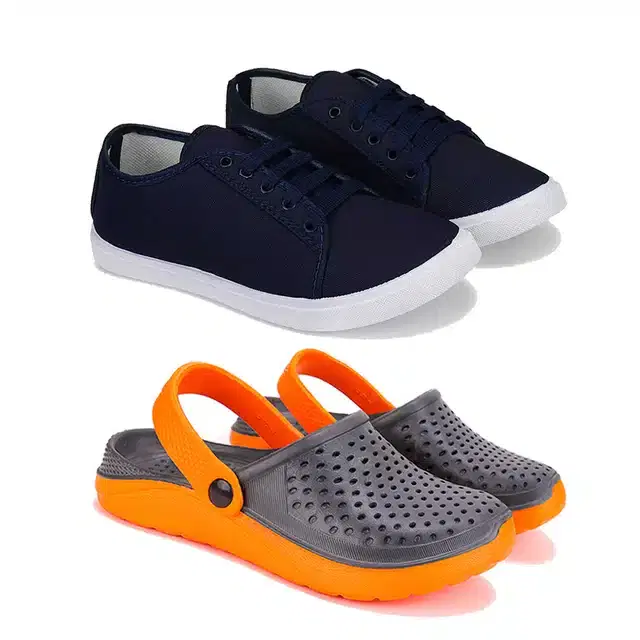 Canvas shoes with Clogs for Men, Pack Of 2 (Multicolor, 7)