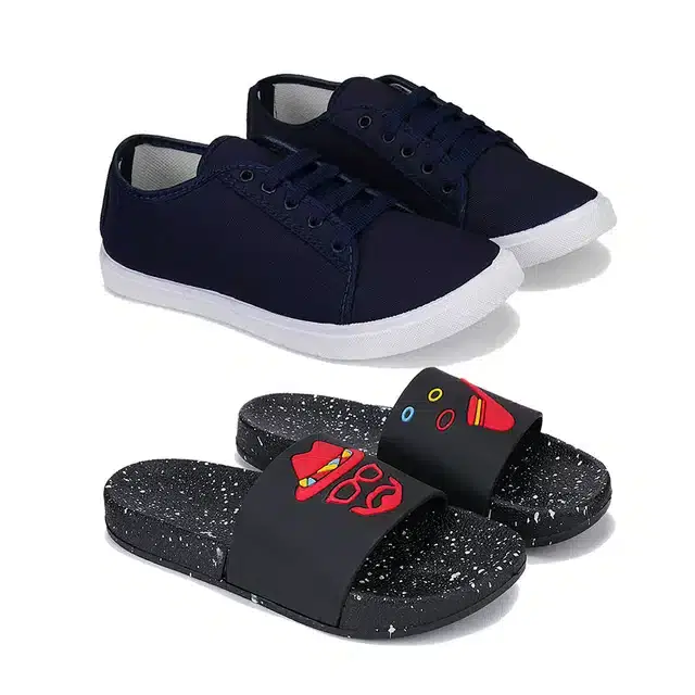 Canvas shoes with flip flop for Men, Pack Of 2 (Multicolor, 7)