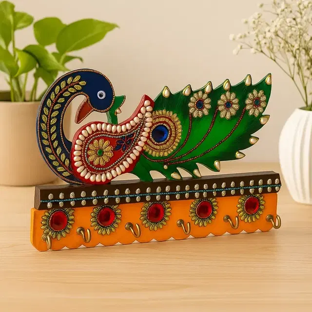 CAPIO ART Peacock Wood Key Holder, 6 Hooks, Multicolor - Buy Online at CityMall