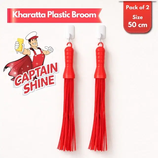 Captain Shine Kharatta Plastic Broom with Hanging Loop, 2x135g [Net], 50cm (Pack of 2) @ ₹112 - Buy Online at CityMall