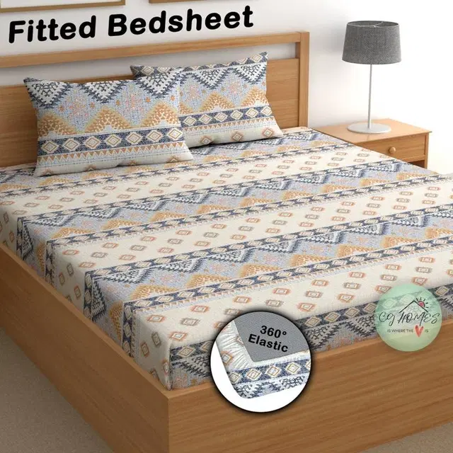 Cotton Feel Fitted (Elastic) Double Bedsheet Ethnic look Print - Buy Online at CityMall