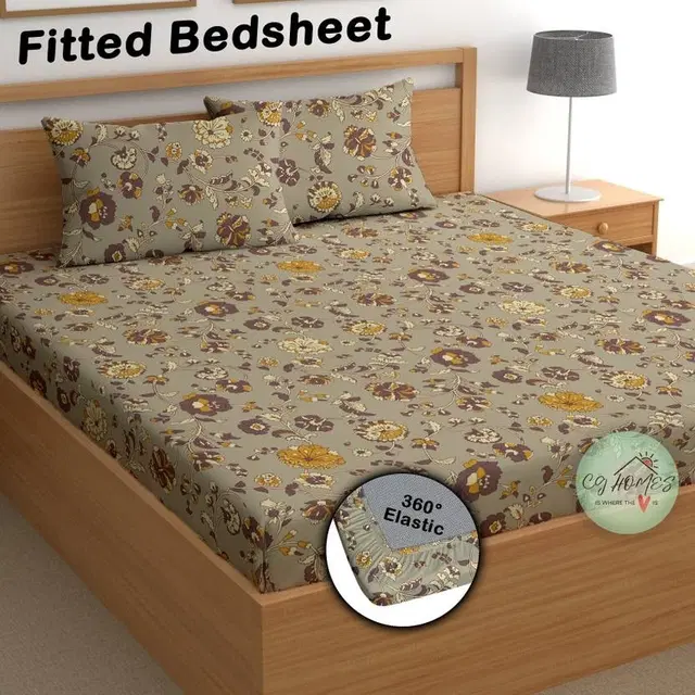 Cotton Feel Fitted (Elastic) Double Bedsheet Floral Branch Print - Buy Online at CityMall