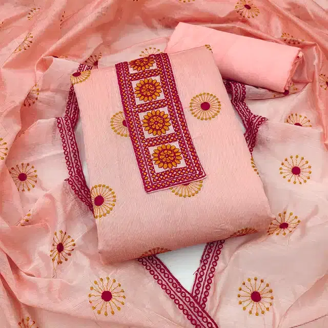 Chanderi Cotton Unstitched Dress Material for Women (Peach) - Buy Online at CityMall