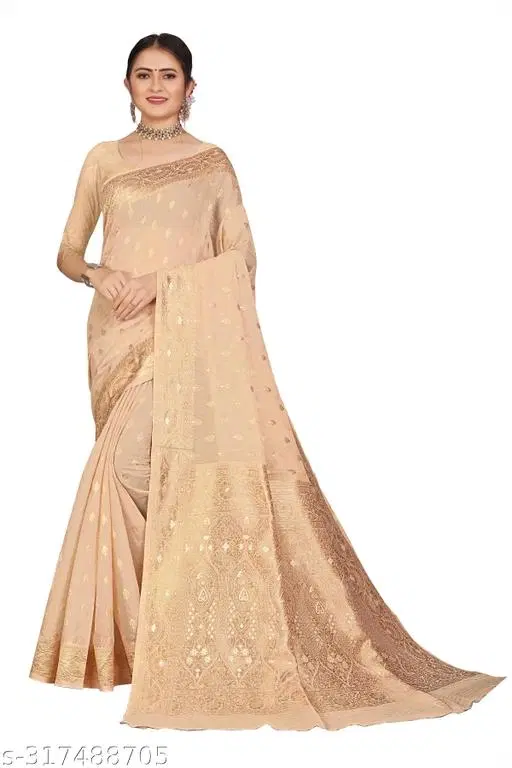 Chanderi Cotton Zari Woven Saree for Women (Beige, 6.3 m) @ ₹724 - Buy Online at CityMall