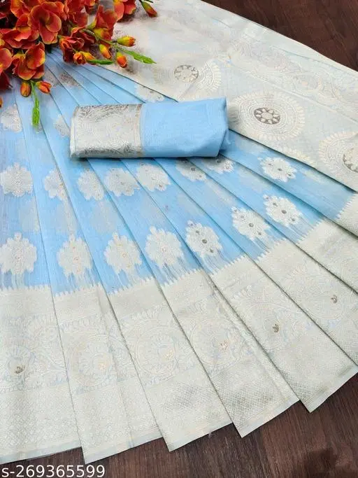 Name: Women's Printed Zari Border Cotton Linen Saree with Blouse Piece