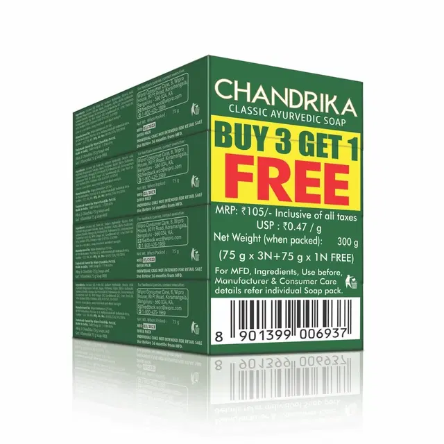 Chandrika Classic Ayurvedic Soap 300 g (4X75 g) (Maha Pack) @ ₹112 - Buy Online at CityMall