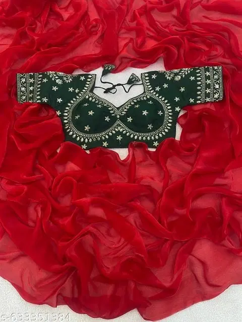 Chiffon Solid Saree for Women, Red (6.3 m) - Buy Online at CityMall