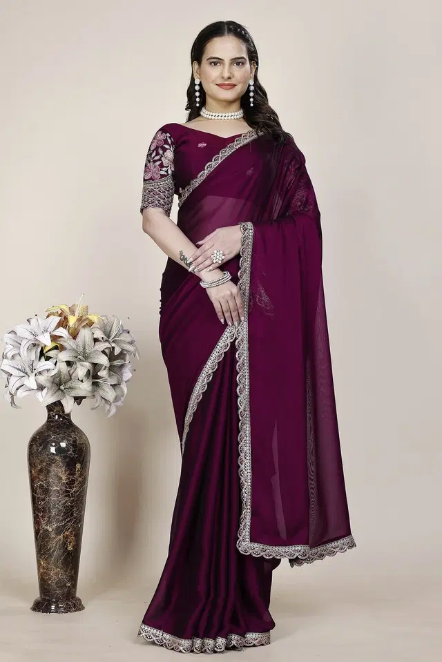 Chiffon Woven Design Saree for Women (Wine, 6.3 m) @ ₹1019 - Buy Online at CityMall