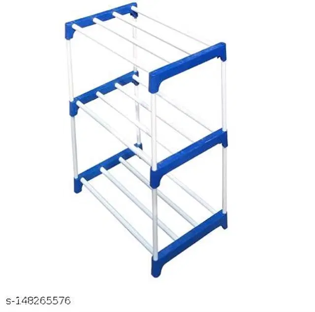 GOLAJI Collapsible Shoe Stand Plastic Blue 3 layer Shelves Rack