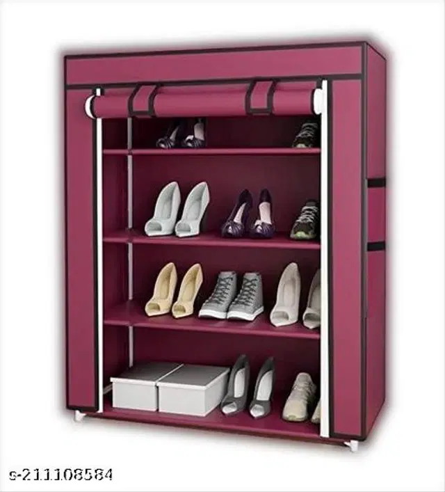 PDI Shoe For Home Storage Rack Multipurpose Foldable Stand (4 Shelves Maroon)