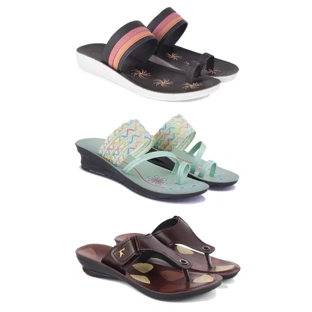 Combo of Flats & Heels for Women, Set of 3 (Multicolor, 5)