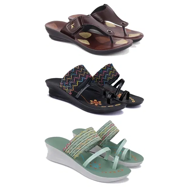 Combo of Flats & Heels for Women, Set of 3 (Multicolor, 6)