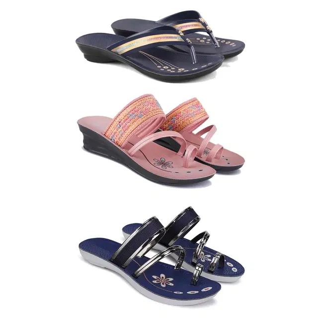 Combo of Flats & Heels for Women, Set of 3 (Multicolor, 7)