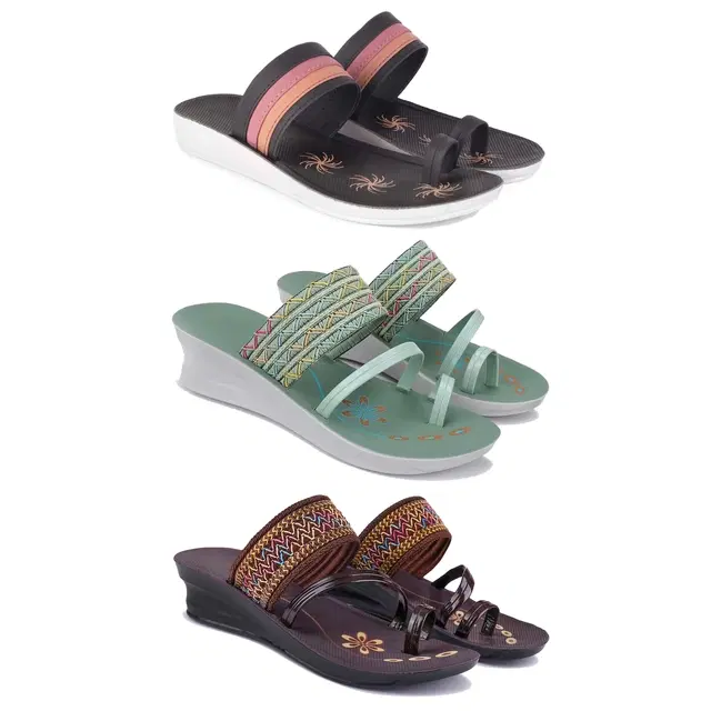 Combo of Flats & Heels for Women, Set of 3 (Multicolor, 7)