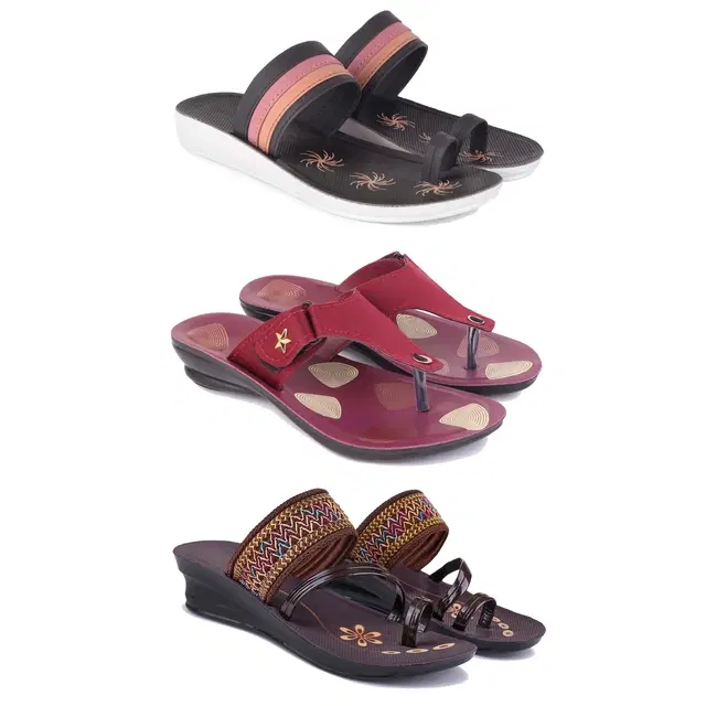 Combo of Flats & Heels for Women, Set of 3 (Multicolor, 7)