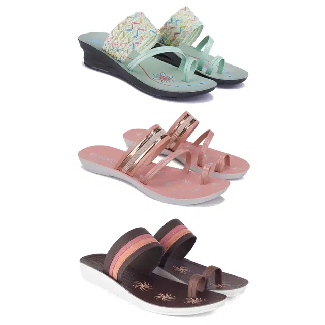 Combo of Flats & Heels for Women, Set of 3 (Multicolor, 7)