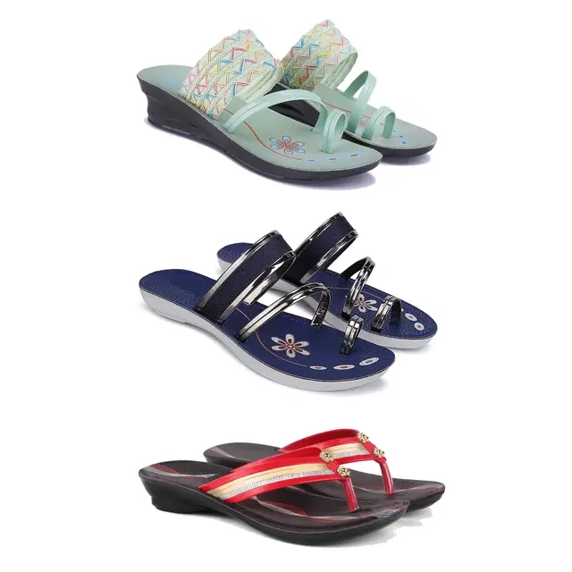 Combo of Flats & Heels for Women, Set of 3 (Multicolor, 7)