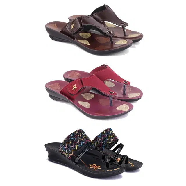 Combo of Flats & Heels for Women, Set of 3 (Multicolor, 7)