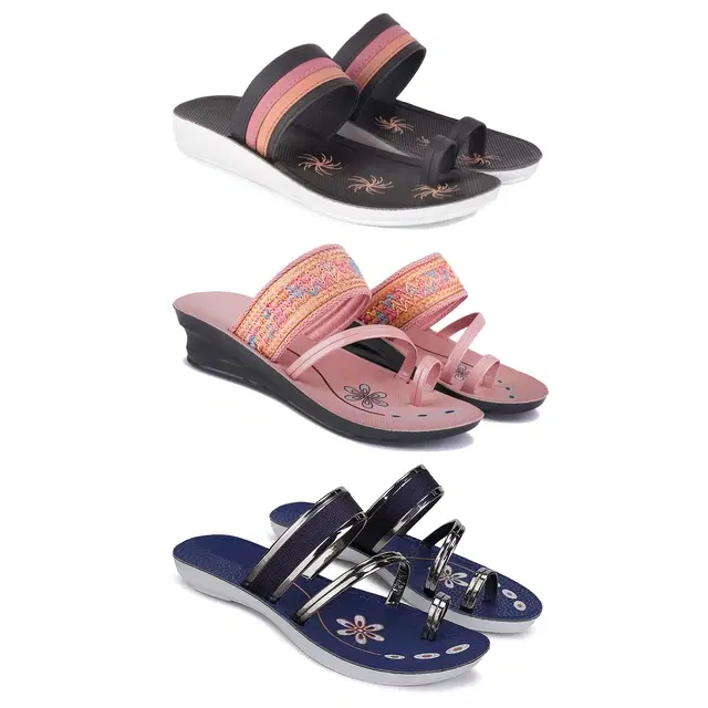 Combo of Flats & Heels for Women, Set of 3 (Multicolor, 7)